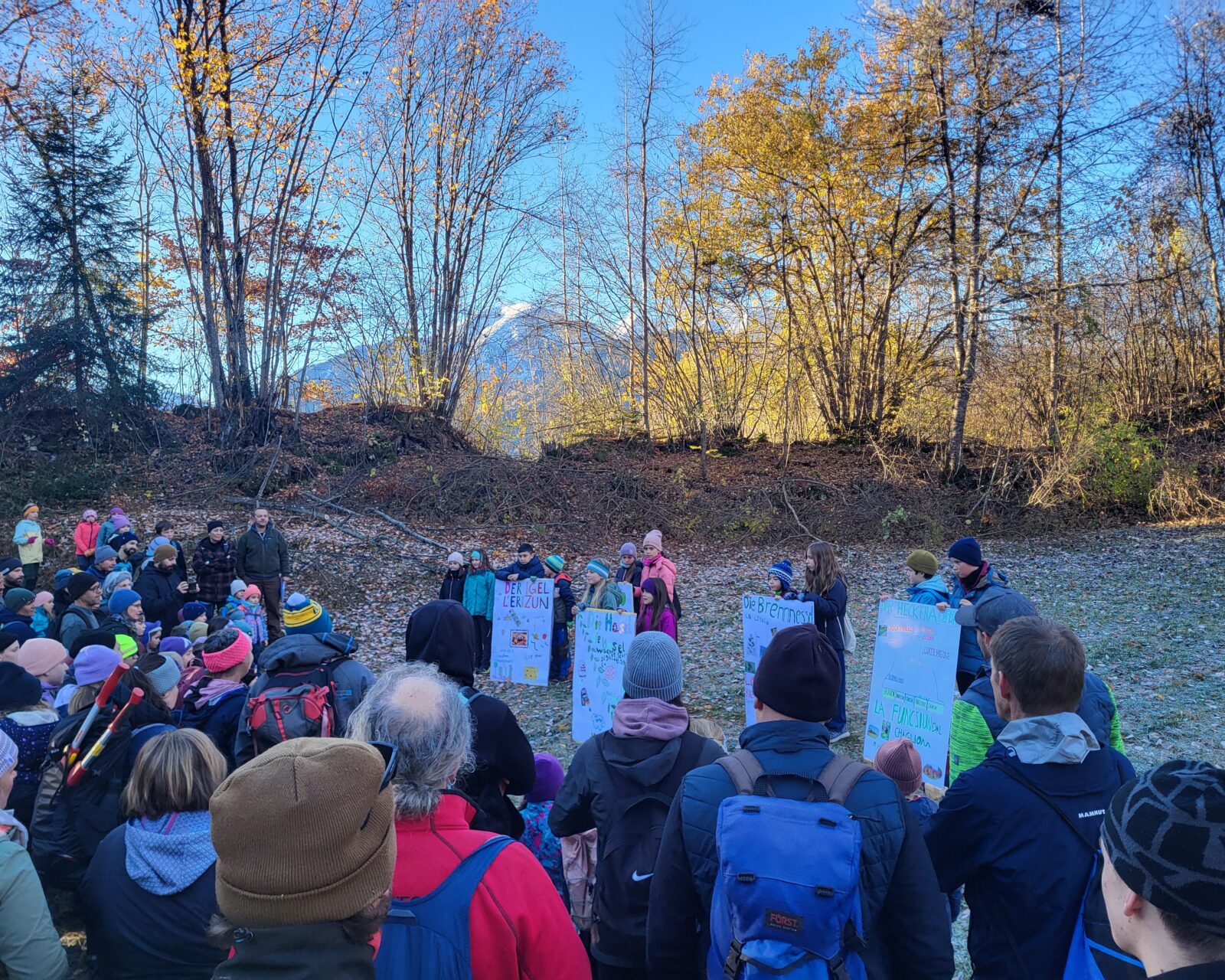 Bereits vor Arbeitsbeginn präsentierten die Viertklässler:innen der Schule Trin Vorträge zum Thema «Hecke». Das ganze Schuljahr über hatten sie sich intensiv mit der Bedeutung, Pflege und Artenvielfalt der Hecken beschäftigt, und ihre Beiträge gaben den Helfenden wertvolle Einblicke in die ökologische Bedeutung der Arbeit.