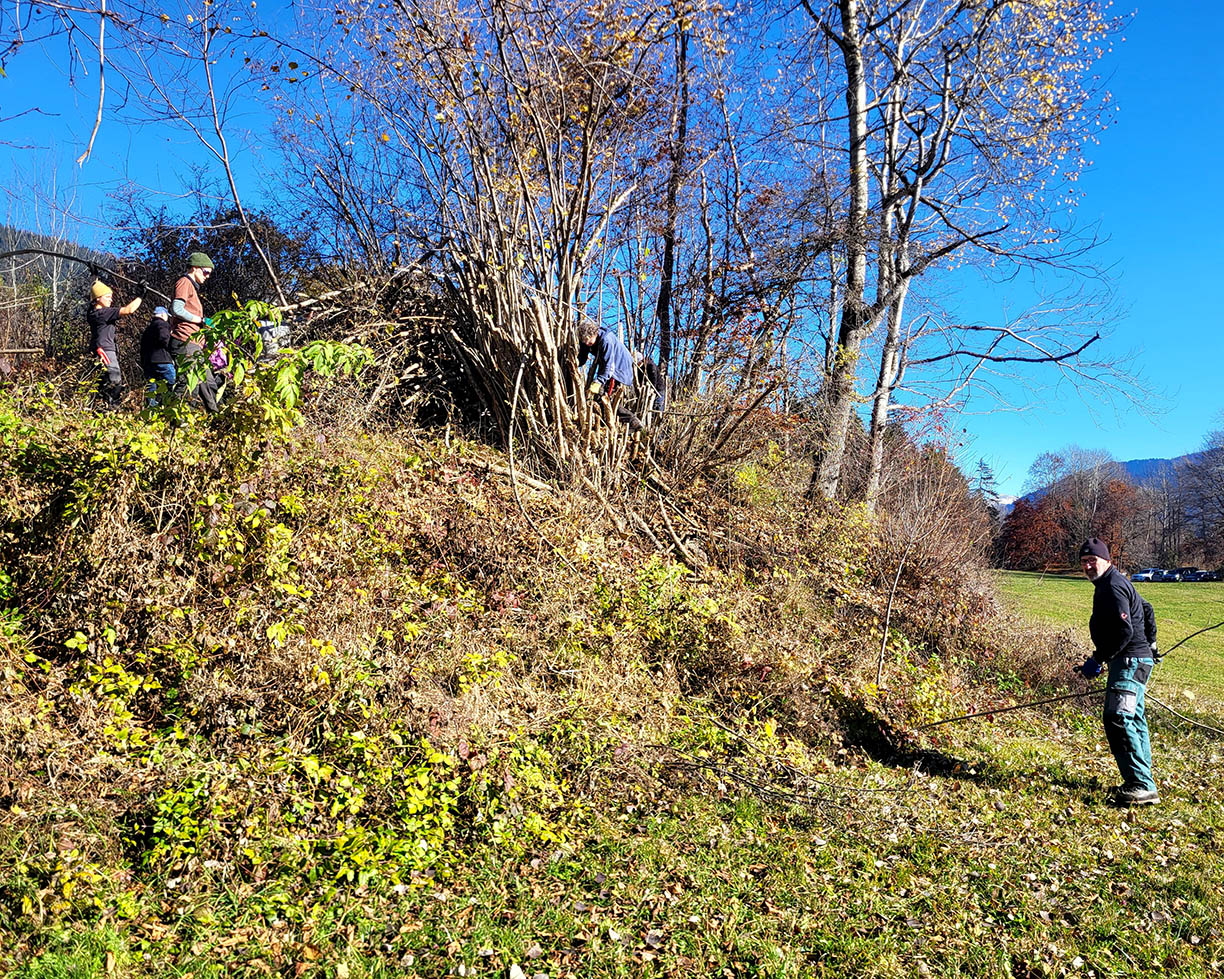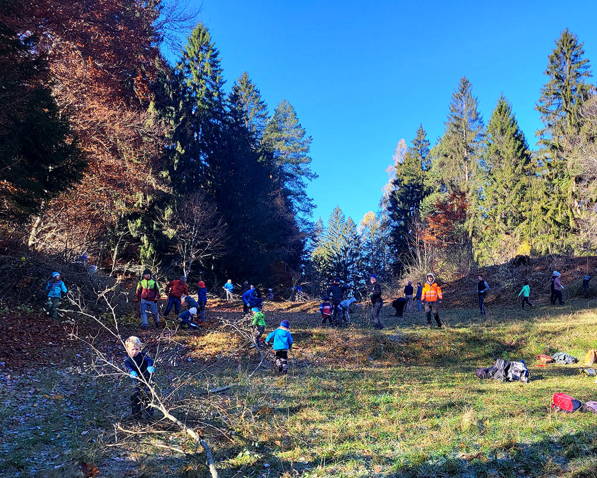 Der Tag wurde mit einem gemütlichen Mittagessen abgerundet: Pasta und Grillwürste wurden von der Gemeinde bereitgestellt, Kaffee und Kuchen vom Bergwaldprojekt serviert. Bestes Herbstwetter, gute Gespräche und viel Einsatzbereitschaft machten den Heckentag zu einem rundum gelungenen Erlebnis.
